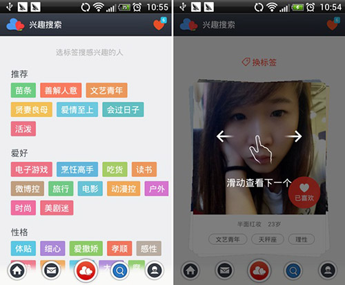 推薦具備相同興趣愛好的異性,讓用戶更快能和異性融洽的接觸。